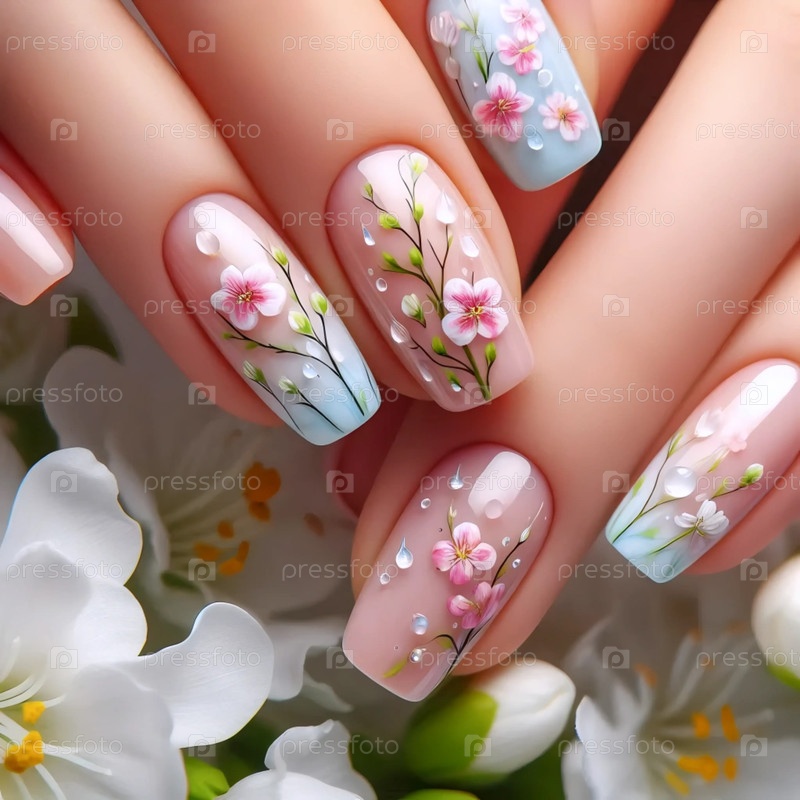 Свежий весенний цветочный маникюр, созданный Ай