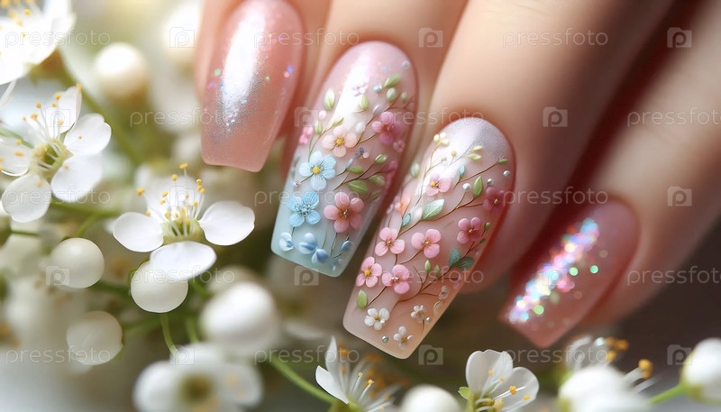 Свежий весенний цветочный маникюр, созданный Ай