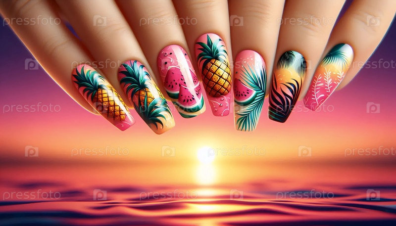 Яркий летний тропический маникюр, созданный Ай