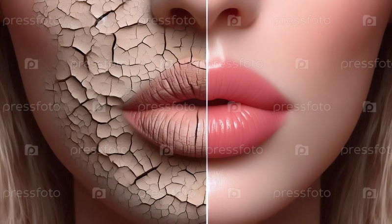 До и после ухода за губами, Ai сгенерировал изображение