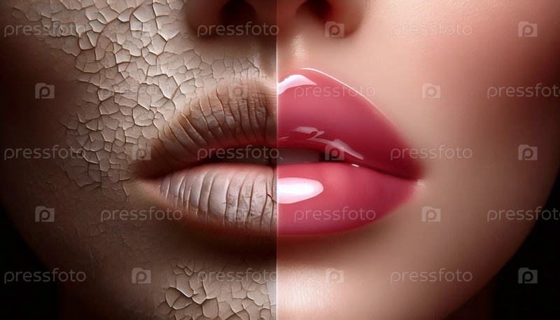 До и после ухода за губами, Ai сгенерировал изображение