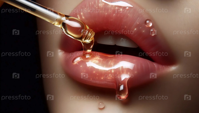 Эффект масляного блеска губ, сгенерированное изображение