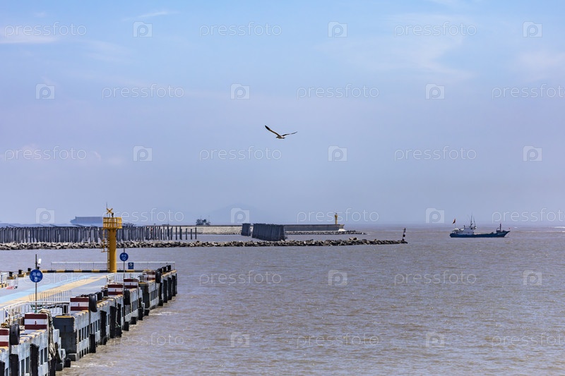 Китайское судно у причала в морском порту Шанхая
