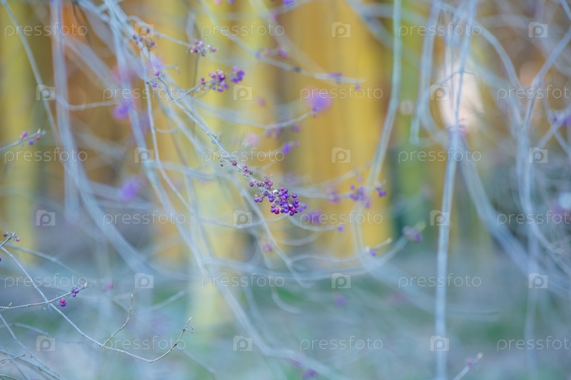 Размытый естественный фон, фиолетовые плоды калликарпы (красота) среди ветвей