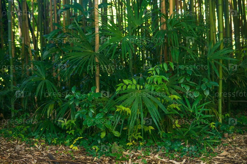 Бамбуковый лес с зелеными тропическими растениями