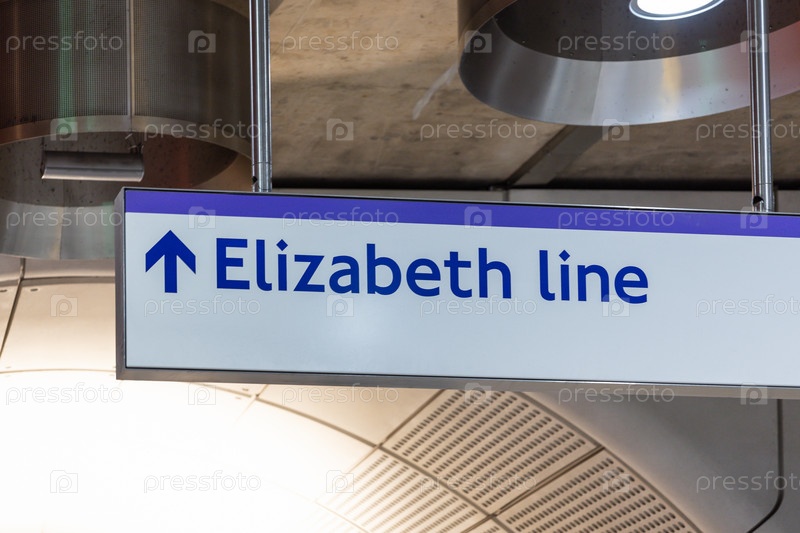 Направленный знак со стрелкой, указывающей вверх на линию Элизабет на лондонской транзитной станции