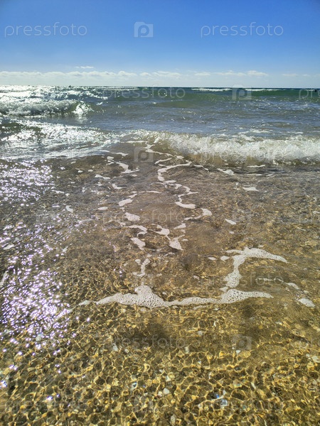 Чистая вода и волны на берегу моря, летний фон, морские обои