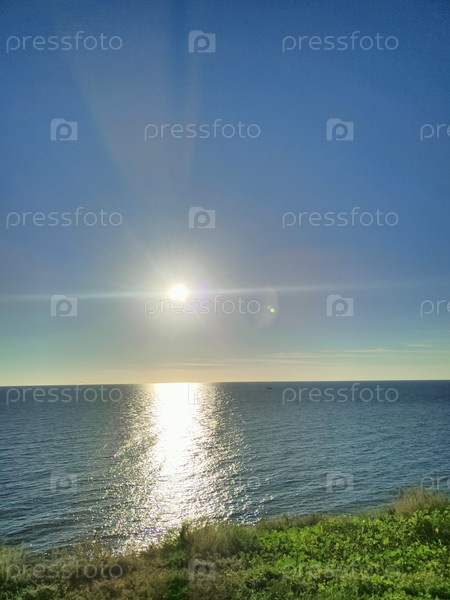 Морской пейзаж с голубым небом и солнечным светом, естественный фон, морские обои