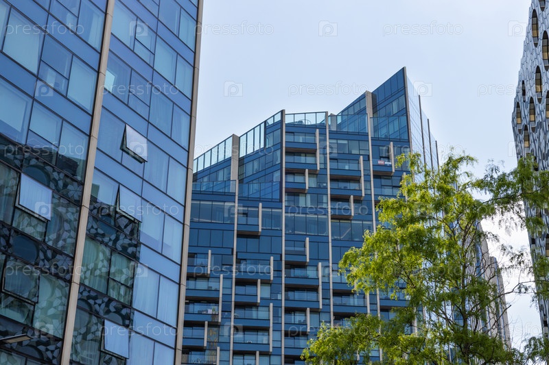 голубые стеклянные здания