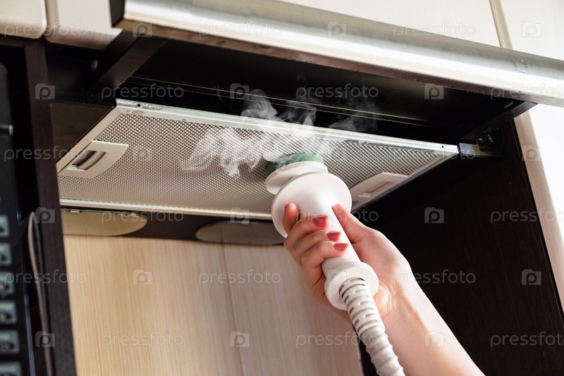 Steam убирает кухонный капот в современном доме в дневное время