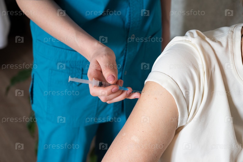 Медсестра вводит вакцину пациенту в медицинских учреждениях в дневное время