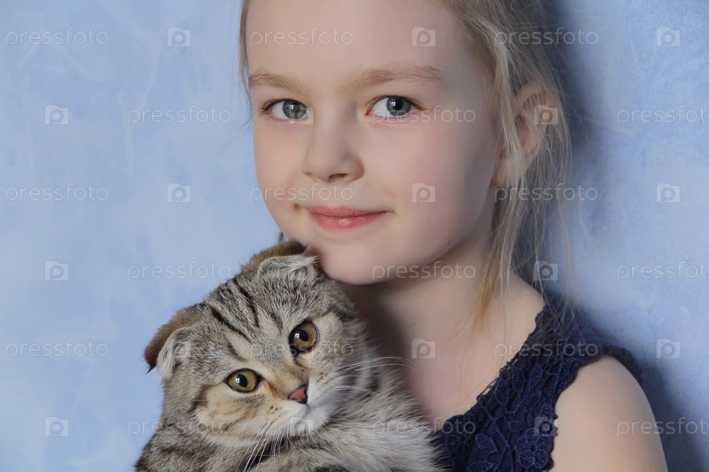 Девушка с серым котенком