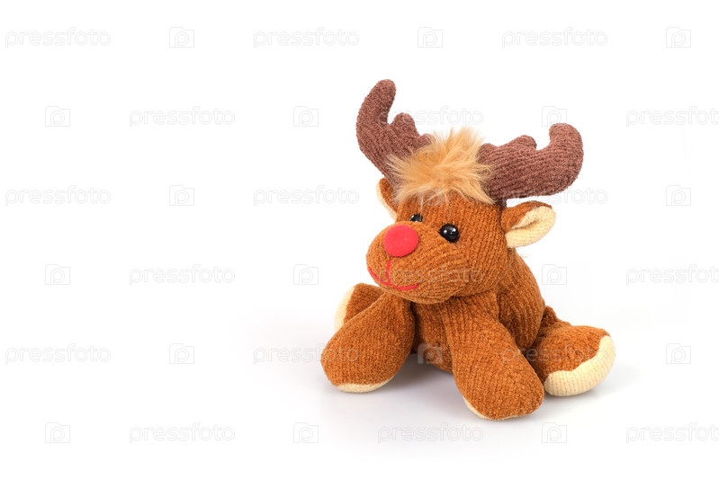 Детская игрушка: Рудольф олень изолирован на белом фоне