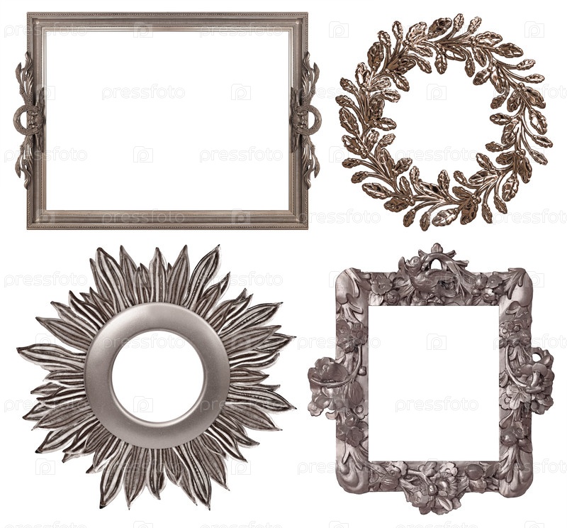 Набор серебряных рам для картин, зеркал или фотографий, изолированных на белом фоне
