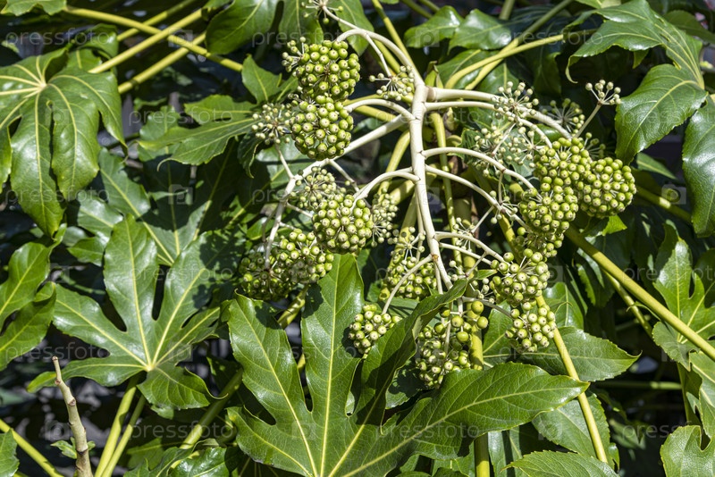 Яркая зеленая листва с распускающимися цветочными бутонами при естественном освещении