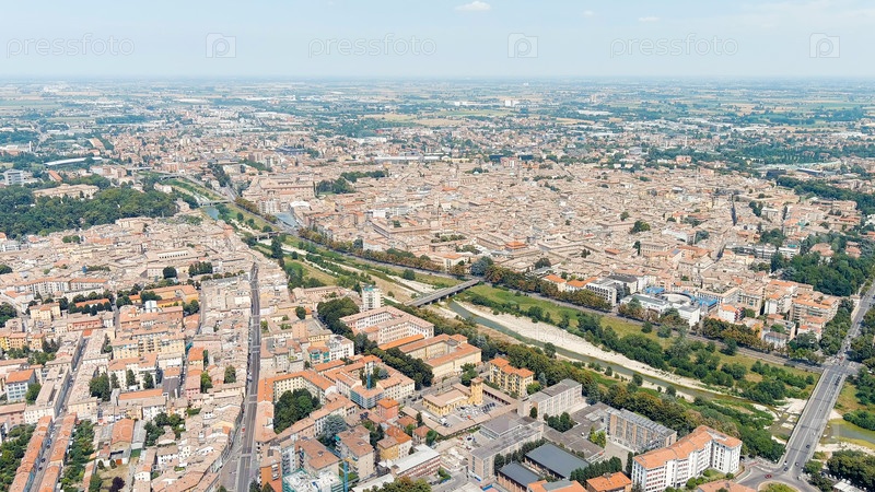 Парма, Италия. Исторический центр Пармы. Река Парма. Панорама города с воздуха. Летний день, Aerial View