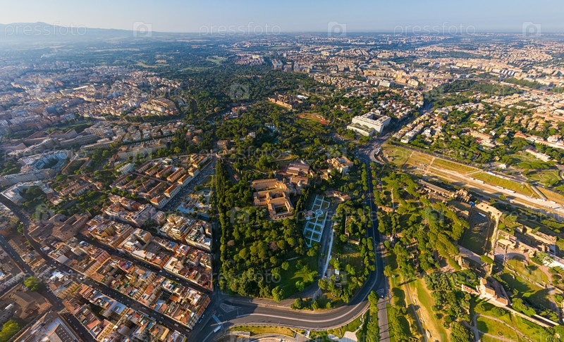 Рим, Италия. Исторический центр. Город у тебя под рукой. Панорама города в летнее утро. Вид с воздуха