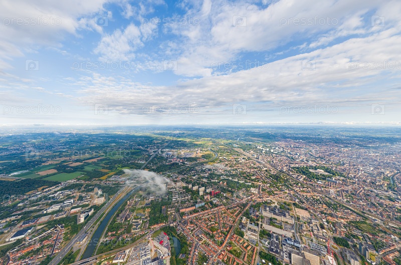 Гент, Бельгия. Промышленная зона. Панорама города. Летний день, облачная погода. Вид с воздуха