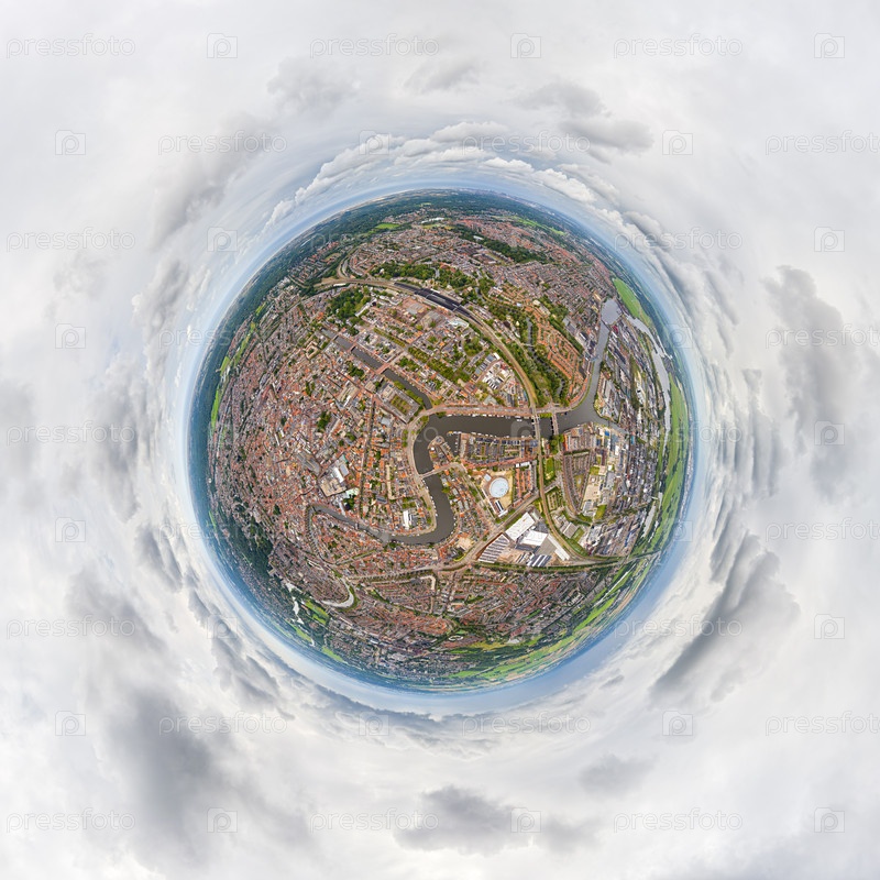 Харлем, Нидерланды. Панорама города летом в пасмурную погоду. 360-градусный панорамный астероид