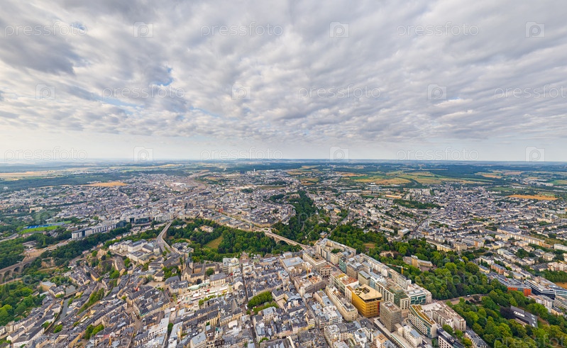 Люксембург, Люксембург. Панорама города. Летний день, облачная погода. Вид с воздуха