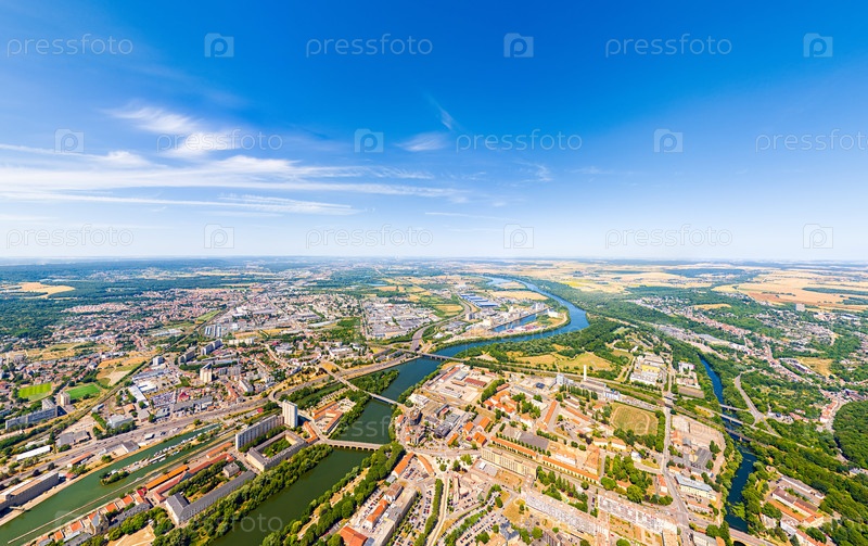 Мец, Франция. Панорама города в летний день. Солнечная погода. Вид с воздуха