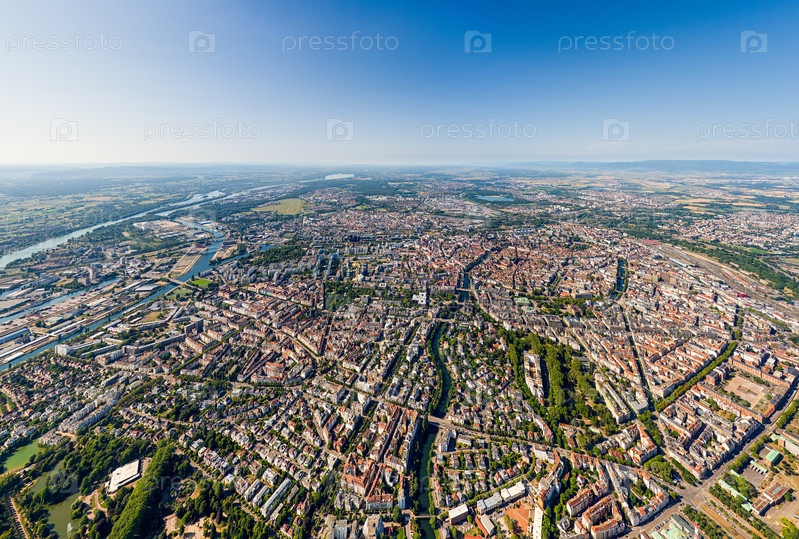 Страсбург, Франция. Панорама города в летний день. Солнечная погода. Вид с воздуха