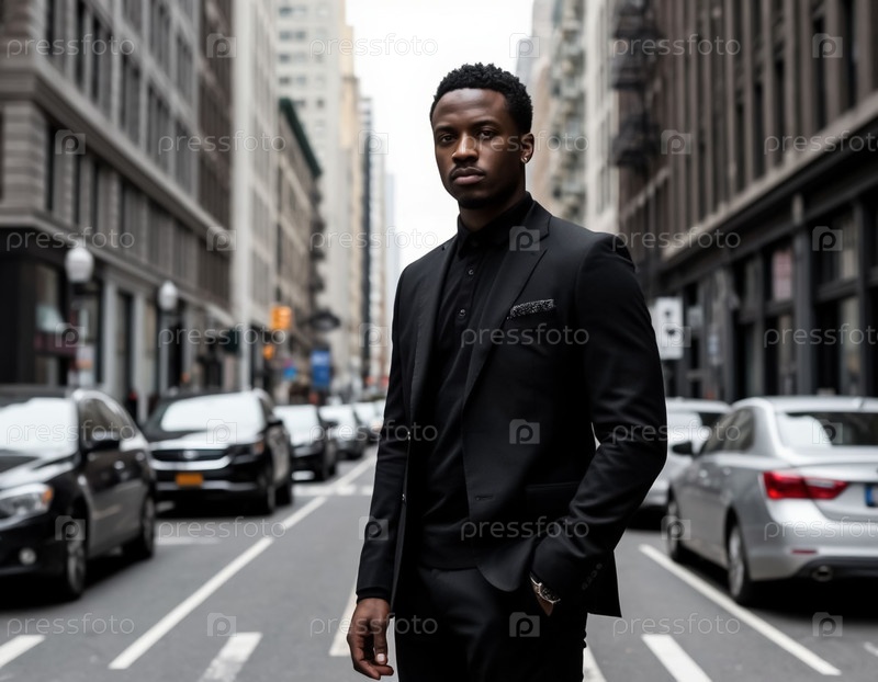 Черный бизнесмен в городе. Генерируется ИИ