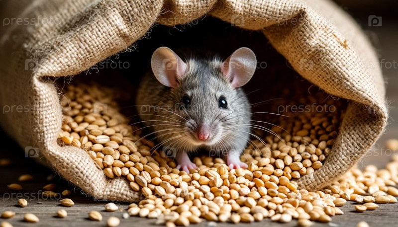 Мышь в мешке с зерном. Сгенерированный ИИ