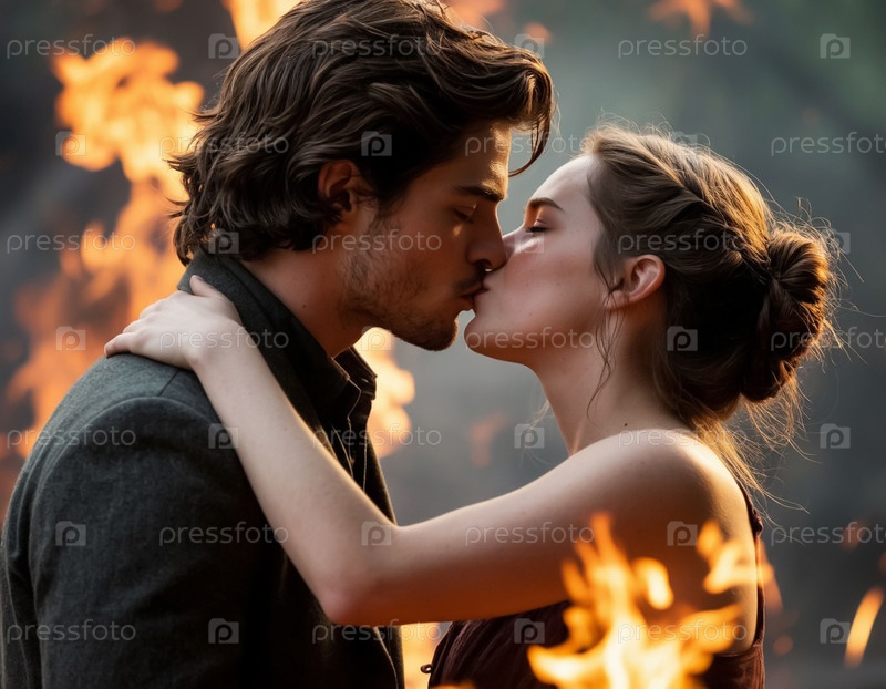 Молодая пара мужчина и женщина целуются. Сгенерированный ИИ