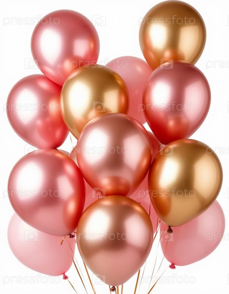Розовые и золотые шары на белом фоне. Сгенерированный ИИ