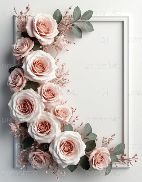 Пустая поздравительная открытка макет в рамке нежных цветов. Генерируется ИИ