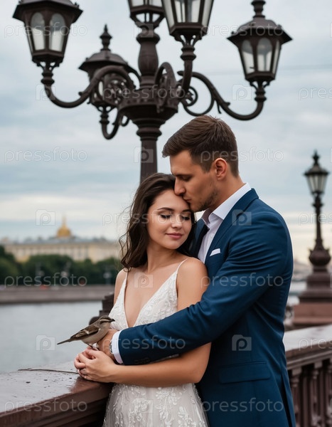 Пара влюбленных, парень и девушка, на набережной под лампой. Генерируется ИИ