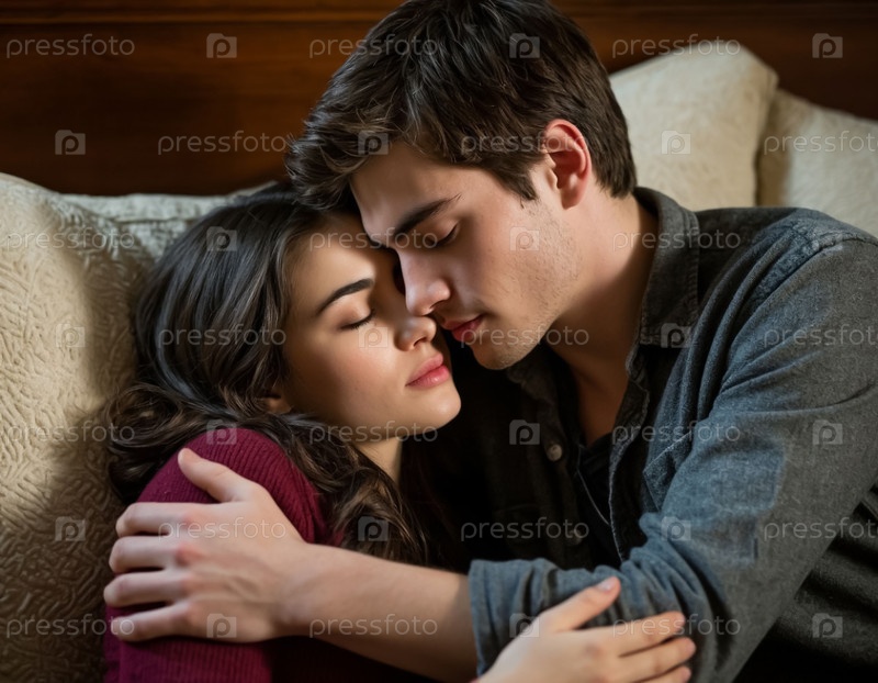 Пара влюбленных, парень и девушка, момент поцелуев и близости. Генерируется ИИ