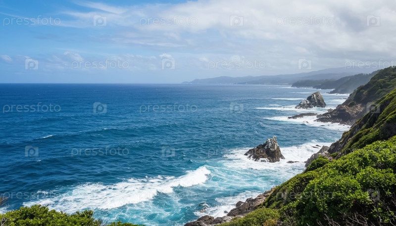 Океанское побережье и скалы. Сгенерированный ИИ