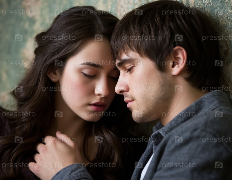 Пара влюбленных, парень и девушка, момент поцелуев и близости. Генерируется ИИ