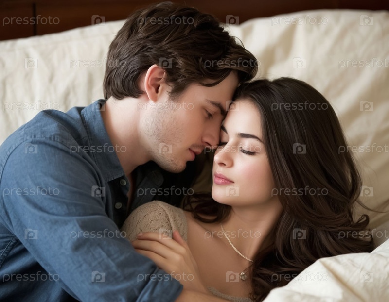 Пара влюбленных, парень и девушка, момент поцелуев и близости. Генерируется ИИ