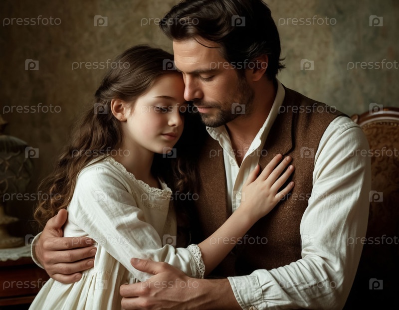 Молодой отец нежно обнимает свою дочку. Генерируется ИИ