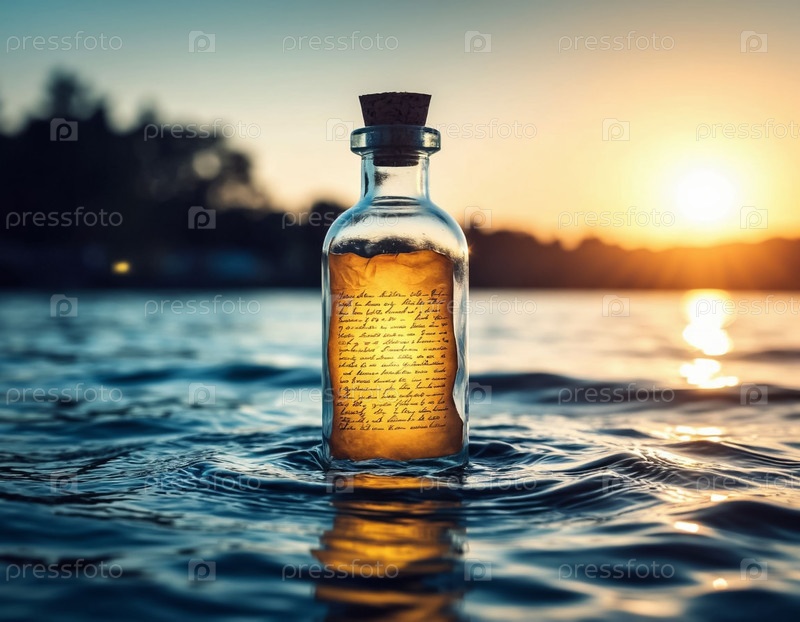 Бутылка в море с запиской внутри. Сгенерированный ИИ