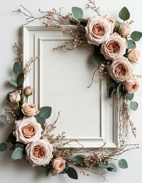 Пустая поздравительная открытка макет в рамке нежных цветов. Генерируется ИИ