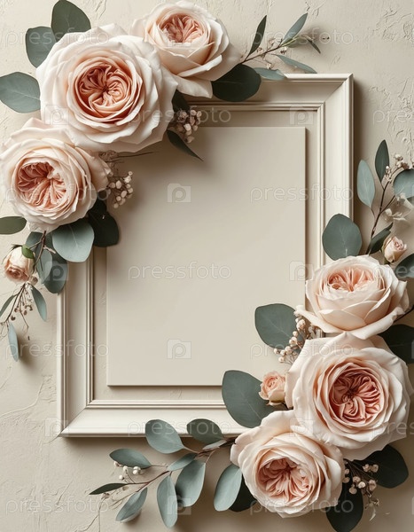 Пустая поздравительная открытка макет в рамке нежных цветов. Генерируется ИИ