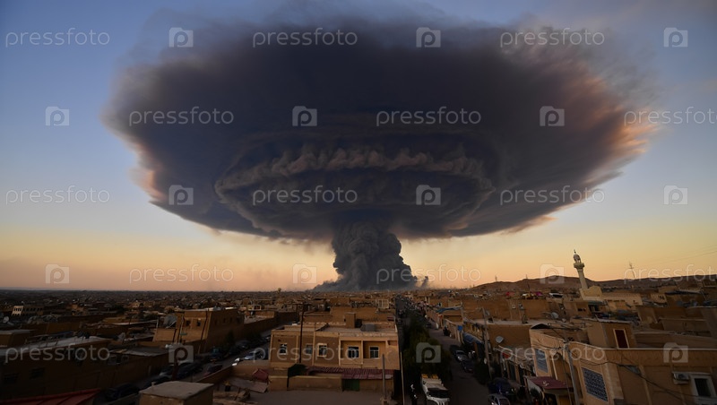 Ядерный взрыв в виде гриба. Военный конфликт. Угроза ядерной войны. Сгенерированный ИИ