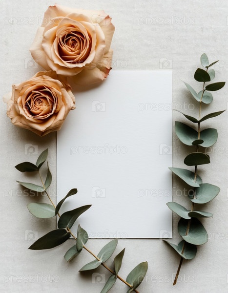 Пустая поздравительная открытка макет в рамке нежных цветов. Генерируется ИИ