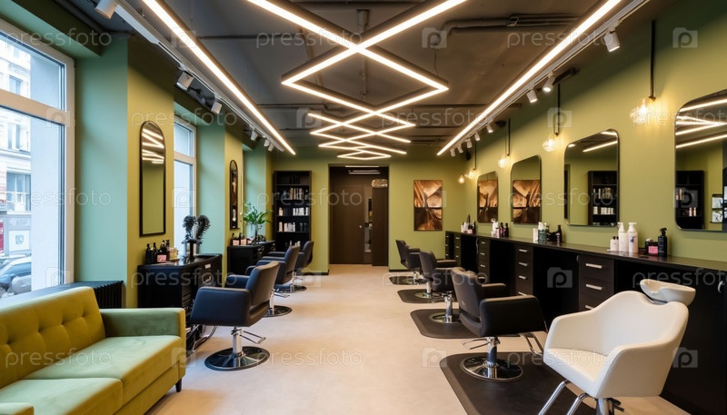 Салон красоты парикмахер в неоновом освещении. Генерируется ИИ