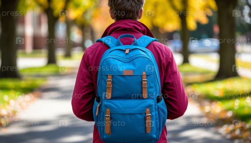 Рюкзак на спине студента, идущего в университет. Сгенерированный ИИ