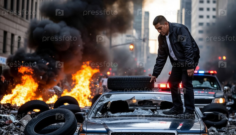 Латиноамериканский полицейский автомобиль, беспорядки в Калифорнии и Техасе. Искусственный интеллект