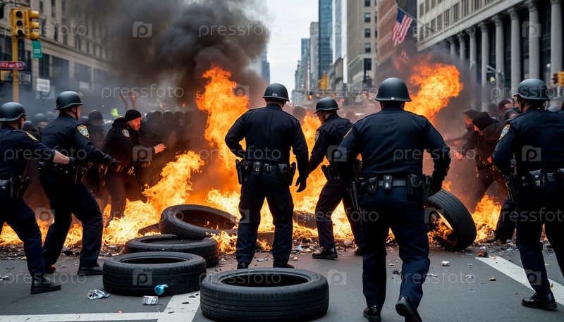 Беспорядки на улицах американского города. Калифорния, Лос-Анджелес. Генерируется ИИ
