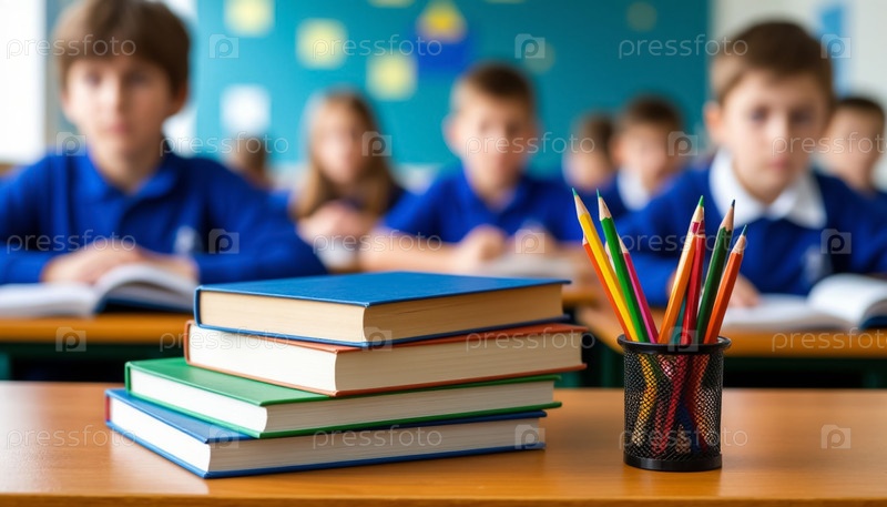 Начало учебного года - школьники в классе при школе. Генерируется ИИ