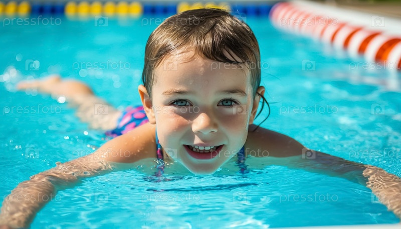 Маленький мальчик купается в бассейне. Сгенерированный ИИ