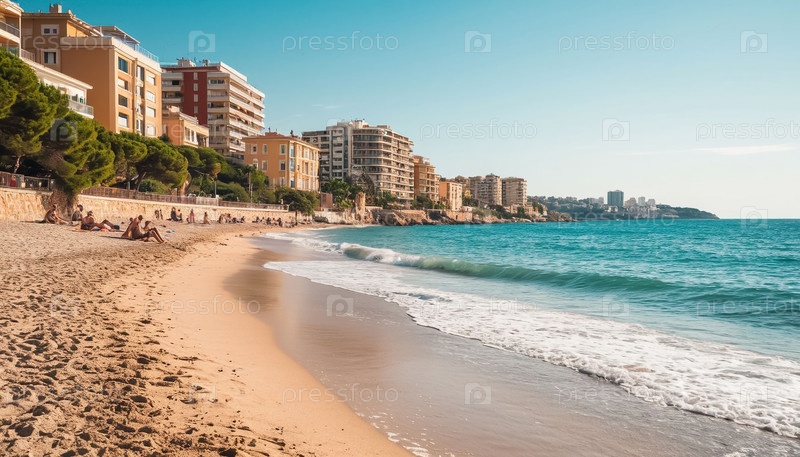 Летний курортный городок у моря. Сгенерированный ИИ