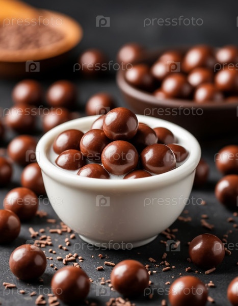 Шоколадные шарики на темном столе. Создан компанией Ai